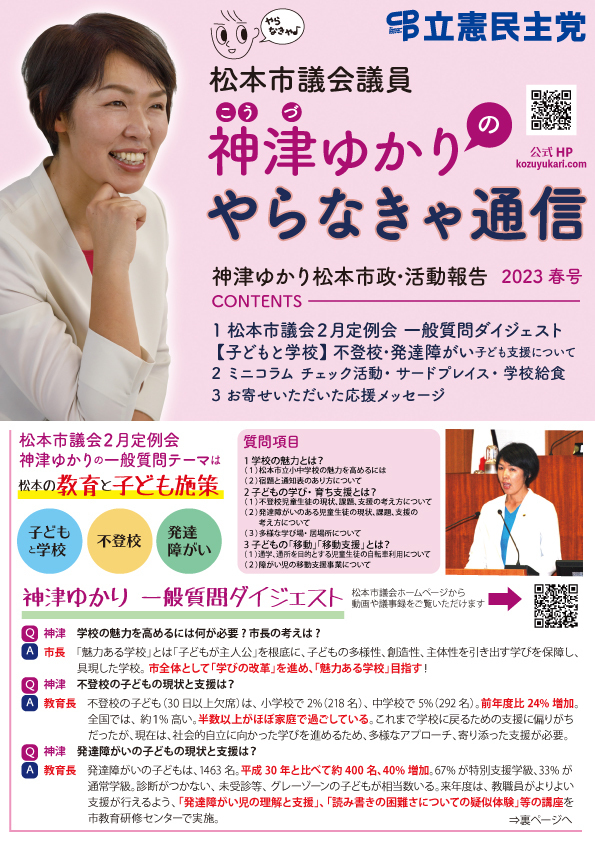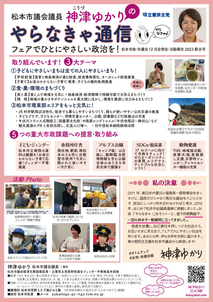 神津ゆかり通信「やらなきゃ」最新号